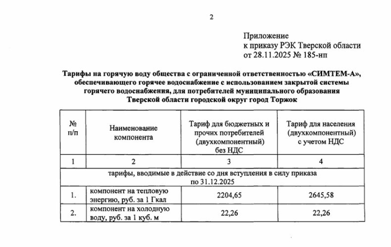 | за 2025 год | Тариф на ГВС для Симтем-А с 01.12.2025г. по 31.12.2025г. Ленинградское шоссе 20,42Г,42В | |